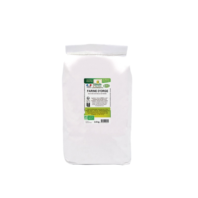La farine d'orge bio se distingue des farines classiques, étant parfaite pour la confection de pains, pâtisseries, crêpes, ainsi que pour préparer des sauces et des soupes. Un véritable atout pour ceux qui souhaitent diversifier leur alimentation avec des produits bio et sains.