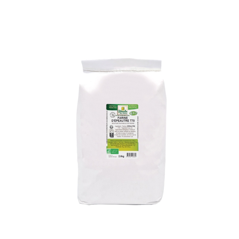 La farine d’épeautre blanche T70 100% épeautre non hybridé, issue de l’agriculture biologique et moulue sur meules de pierre, allie tradition et excellence. Obtenue à partir d’une variété ancienne de blé, l’épeautre, elle se distingue par sa richesse nutritionnelle et son goût subtil.