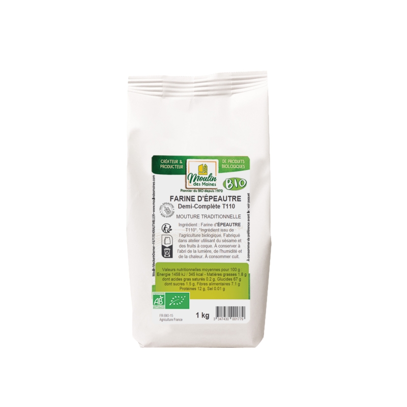 Farine d'ÉPEAUTRE T110* 100% épeautre non hybridé. *Ingrédient issu de l'agriculture biologique.