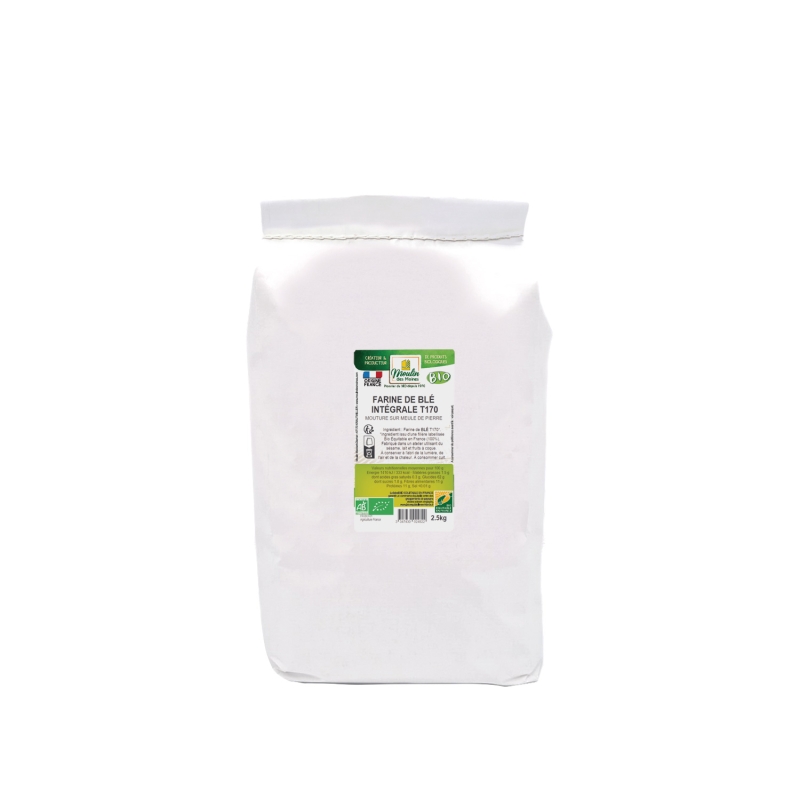Optez pour la farine de blé intégrale T170, moulue sur meules de pierre selon une méthode ancestrale, pour une alimentation saine et gourmande. Issue d’un broyage respectueux du grain entier, elle conserve fibres, minéraux et vitamines, faisant d’elle un ingrédient idéal pour une cuisine naturelle et équilibrée.
