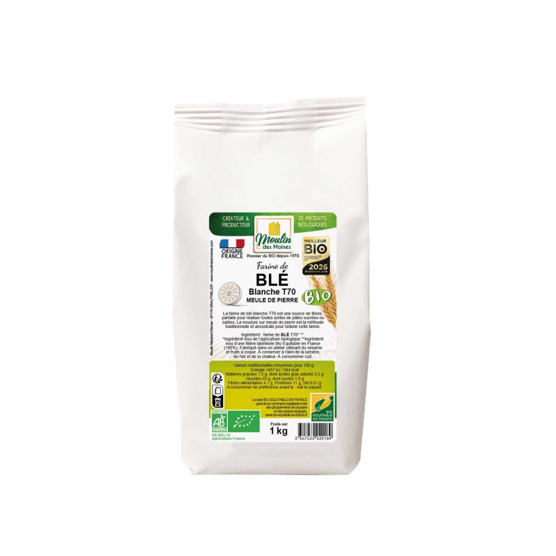 Choisissez la farine T70 meule de pierre bio et équitable, un ingrédient d’exception pour une cuisine saine, engagée et pleine de saveurs !